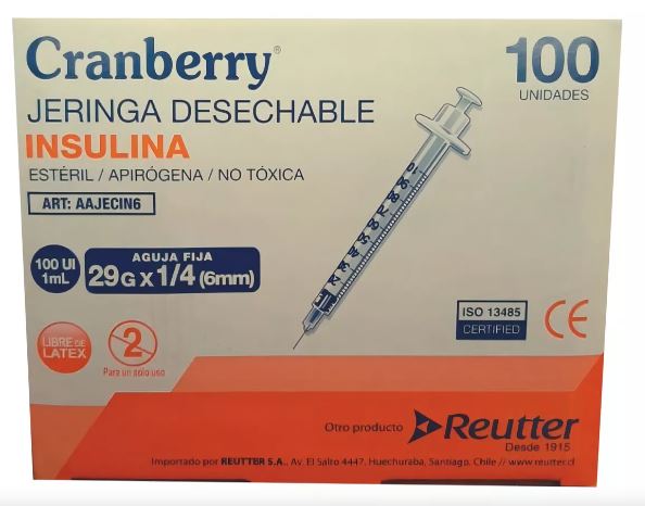 Dispositivo médico desechable indicado para inyecciones de insulina 20G x 1/4 (6mm), su unidad de medida es 1 ml.